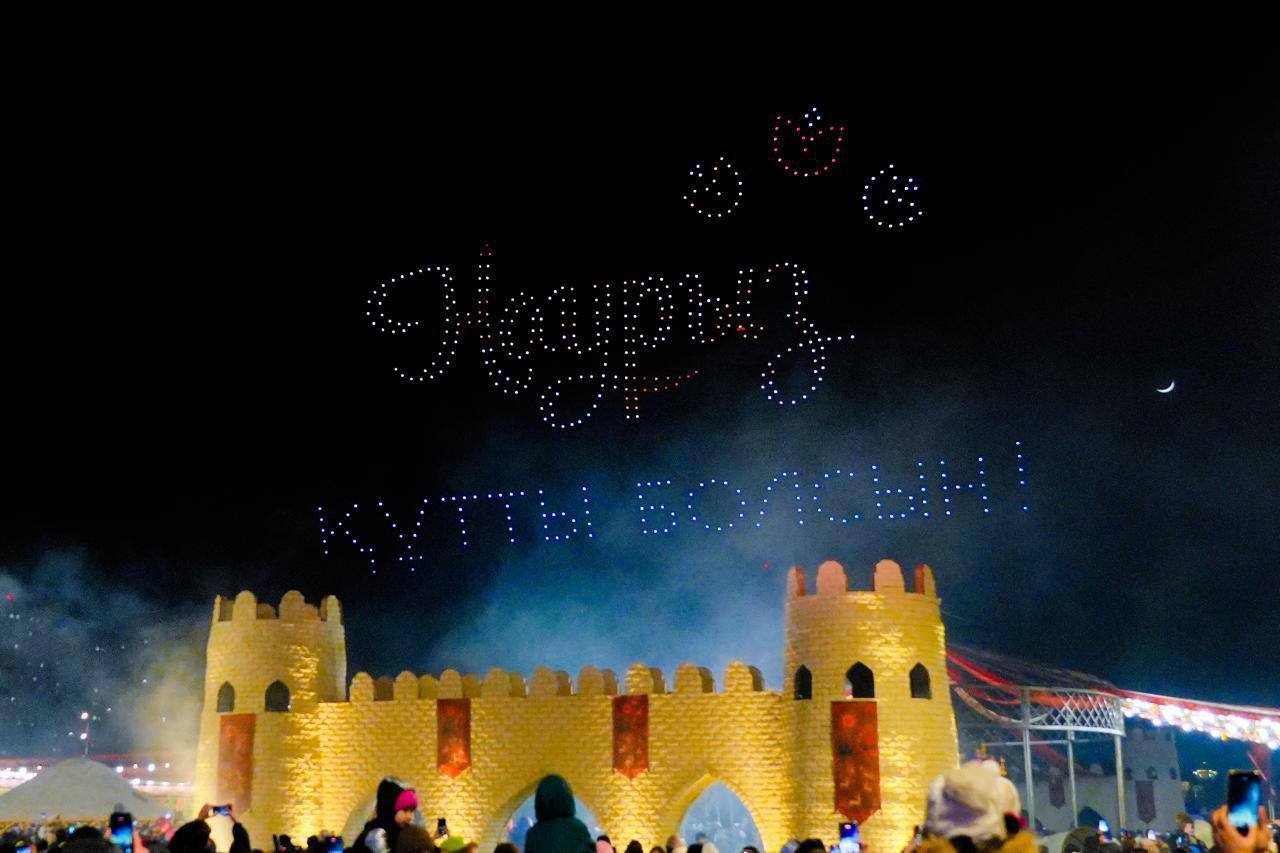 Финалом шоу стала яркая надпись «Наурыз құтты болсын!», озарившая небо и завершившая праздничное представление.